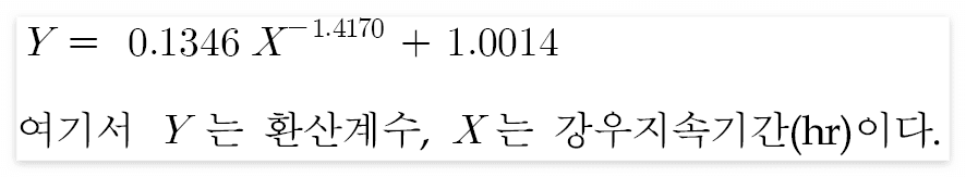 - 고정시간-임의시간 환산계수는 일반적으로 아래와 같은 회귀식을 작성하여 적용한다