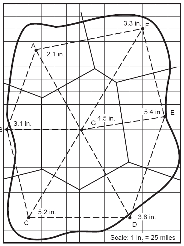 4. 이러한 이등분선은 각 지점 주위에 다각형을 형성합니다. 각 다각형은 다각형 내에 있는 관측소 지점의 유효 영역을 나타냅니다. 경계에 가까운 지점의 경우 다각형의 닫힘 한계를 형성합니다.
