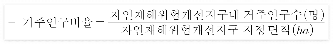 | 구분 | 자연재해위험개선지구 지정 면적대비 거주인구비율 | ||||