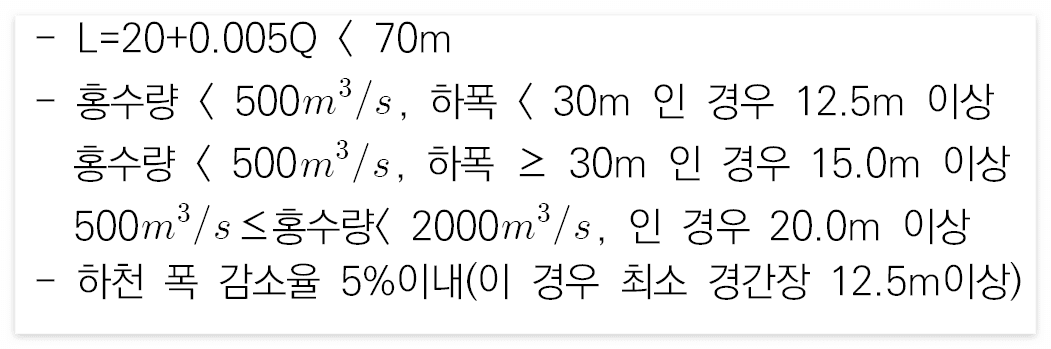 - 교량의 다리밑 공간 : 계획홍수의 + 여유고