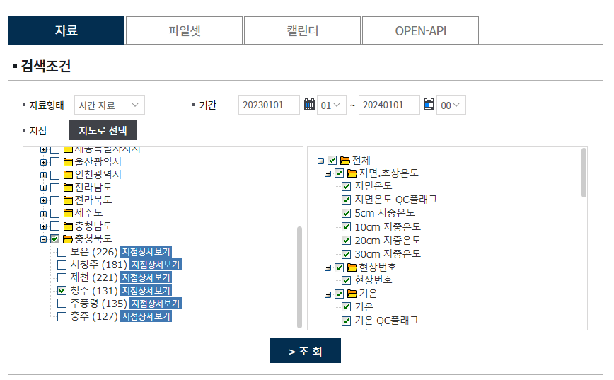 2.3.2 기상자료 조회 및 다운로드