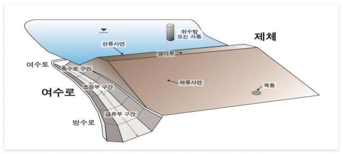 - 방수로 끝의 정수지는 홍수 유하에 의한 충격에도 안전하도록 검토