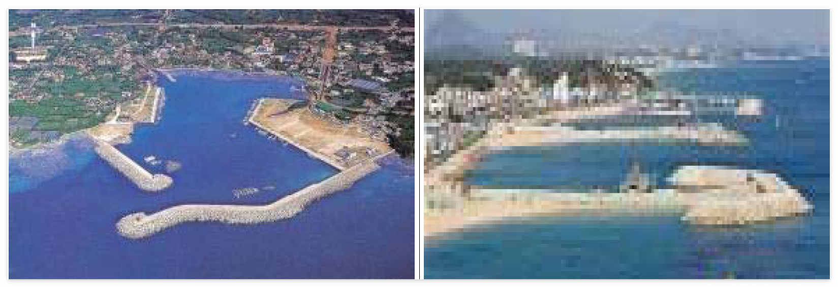 - 해안시설은 그 기능이 충분히 발휘되도록 효과적으로 배치하고, 가능하면 복수의 연안 보전시설을 조합시키는 복합방호방식을 적용