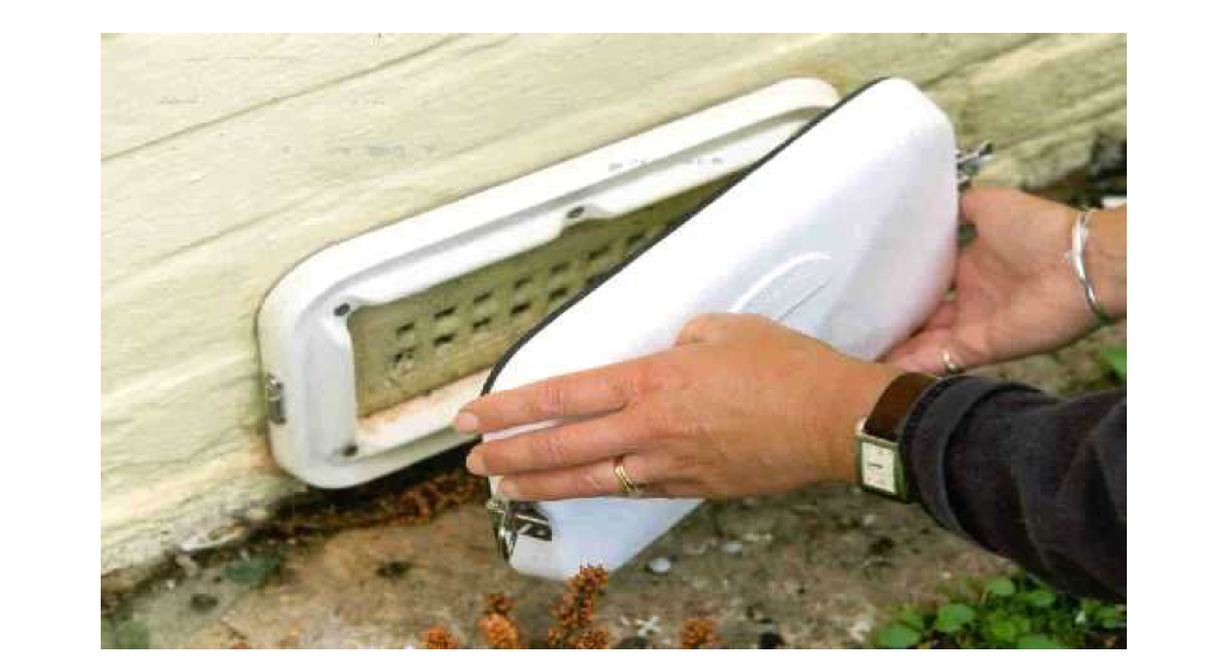 - 환기구를 통한 침수방지를 위하여 차수문을 설치하거나 일반주택의 경우 임시적으로 아래 그림과 같이 방수캡을 사용하여 빗물 유입을 방지한다.