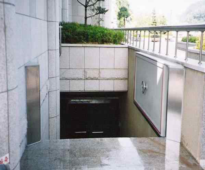 • 출입구에 방수판은 작동방식상 자동식과 수동식으로 구분할 수 있다. 열리는 형태에 따라 부착 고정식, 여닫이식, UP-DOWN 식으로 나뉘어 있다. 방수판의 경우 지하철과 같은 시설물에는 보통 자동식이며 여닫이식 문의 형식으로 적용하고 있으며 국내 지하철 출입구에도 최근 설치되고 있다. 일반주택의 경우 수동식 방수판 중 출입구의 구조에 맞는 열리는 형태를 선택하여 설치한다