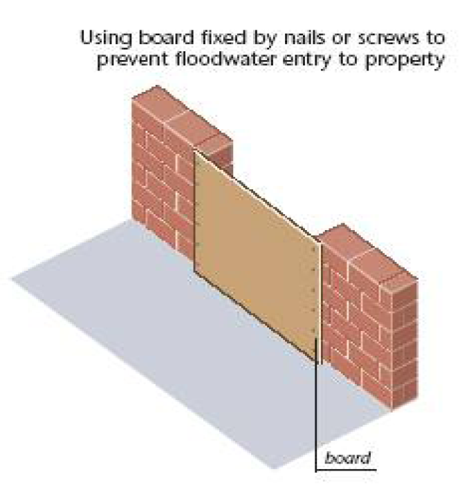 • 지하시설 유입구에 방지턱을 통한 지하시설내 침수를 방지하는 것이 통상적이지만 적정 높이 이상의 방지턱 설치가 어려우므로 방지턱을 넘어 유입되는 물을 차단하기 위하여는 방수판을 설치하여야 한다. 지하시설의 크기기 적거나 불가피하게 방수판을 설치할 수 없는 경우에는 지하시설 출입구에 모래주머니를 준비하여 비상시 사용할 수 있도록 해야 한다.