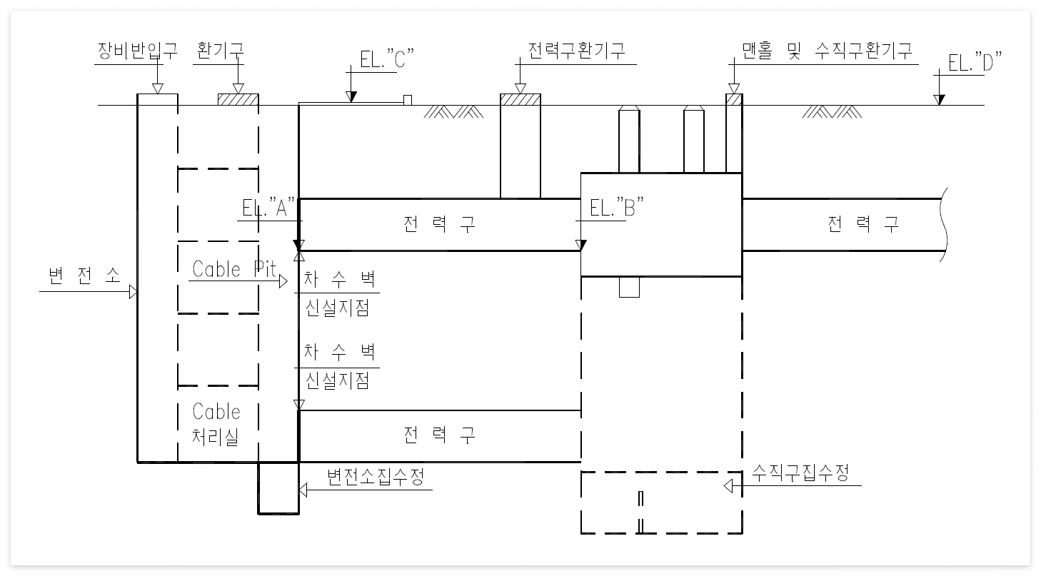 • EL"A" < EL"B" : 변전소 방향으로 침투수 유입가능