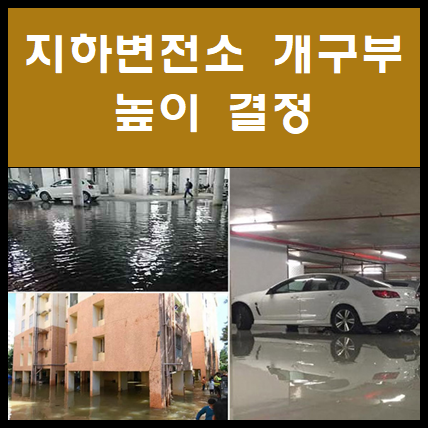• 지하변전소의 경우 전력공급의 말단으로 가동 중단시 주변지역에 주는 피해가 크므로 상습침수지역에 설치를 하지 않아야 한다. 다만, 설치하는 경우 주변 빗물펌프장의 배수용량과 관계없이 그 생명선을 확보할 수 있는 정도의 수방 대책이 이루어져야 한다.