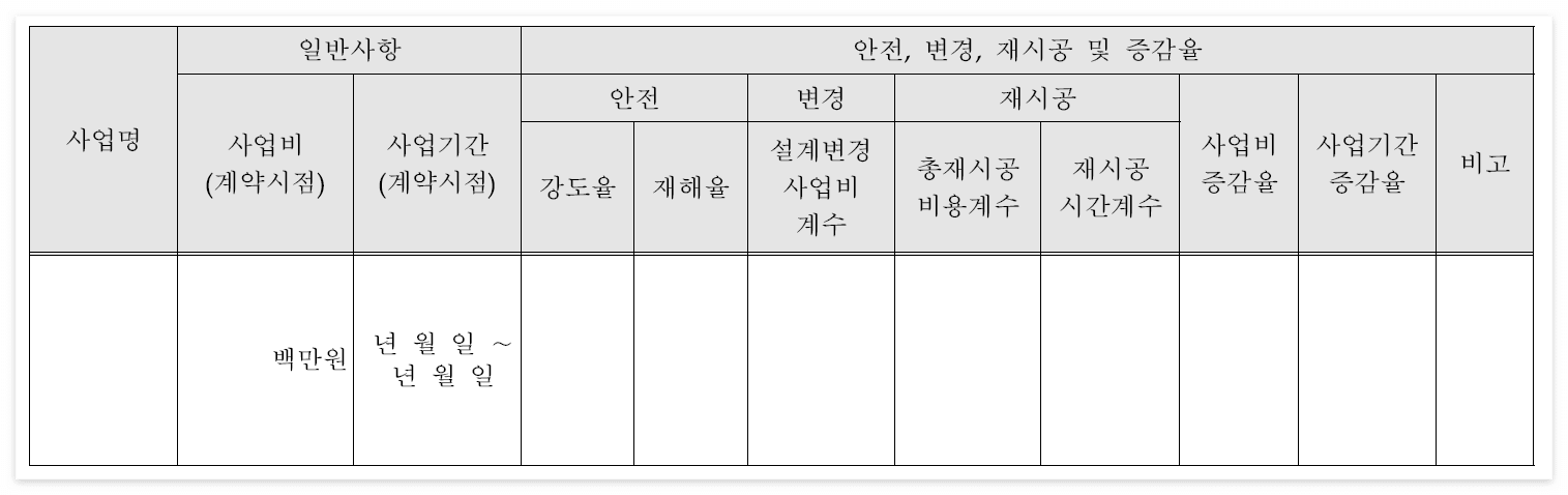 | 공공시설 피해액 | 사업관리비 및 기타내용 | |||