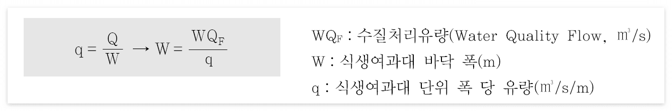 - 단위 폭 당 유량과 수질처리유량(WQF)을 이용하여 산정