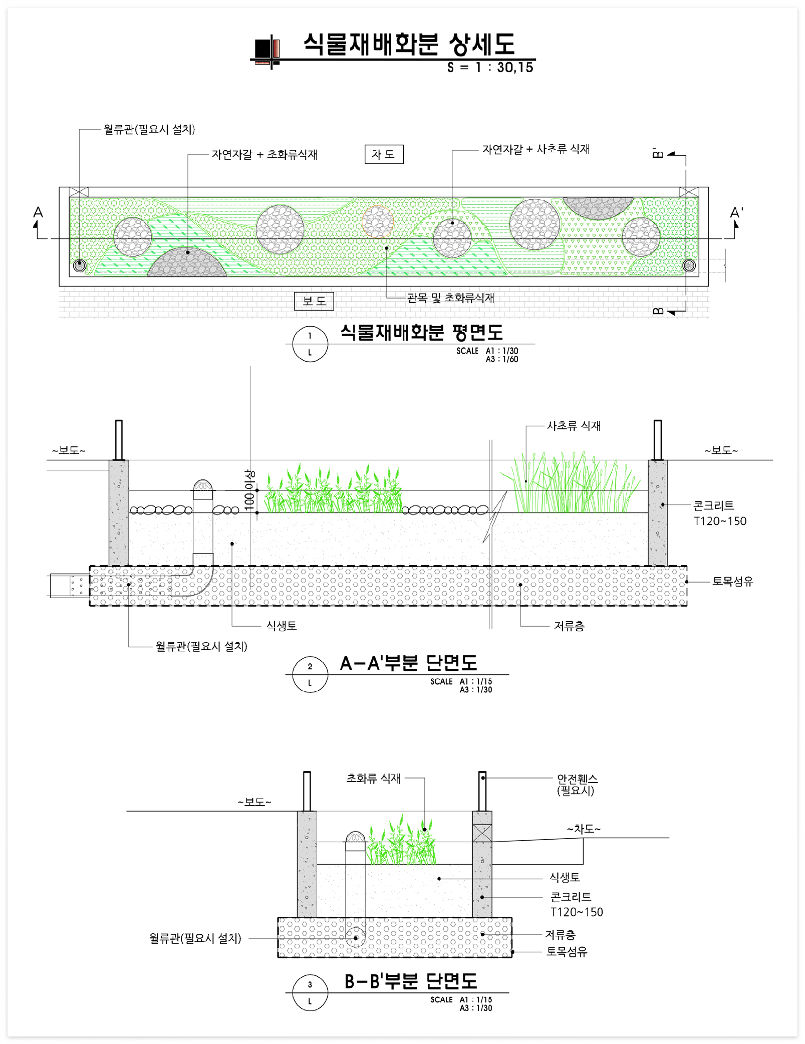 - 수종선정 : 초본과 관목으로 적절히 조합하여 식재