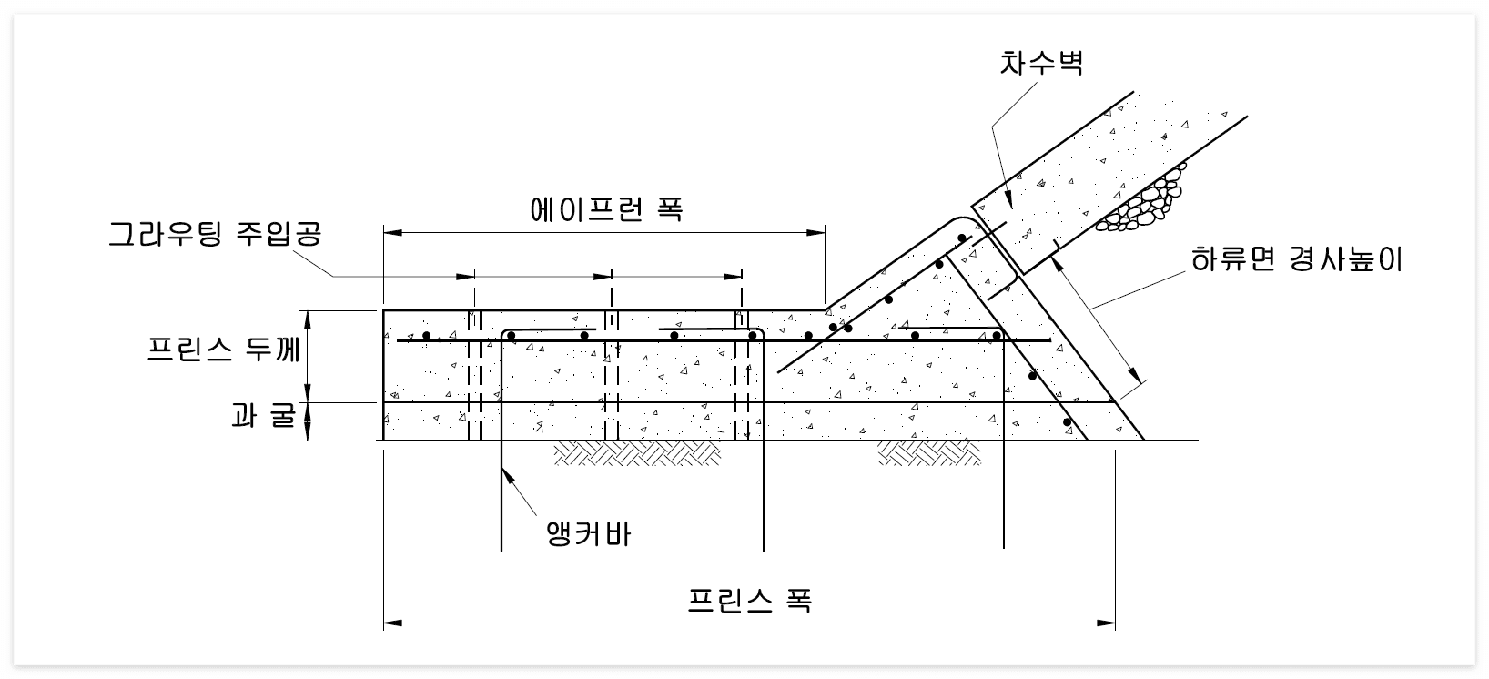 - 프린스는 차수벽과 댐 기초를 수밀상태로 연결하고, 그라우트 캡으로서의 역할을 하기 위한 것이다.