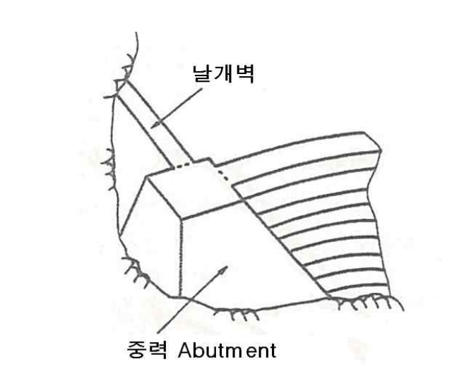 - 중력 인공받침은 보통 그 상류측에 날개벽(wing dam)과 함께 설치한다.