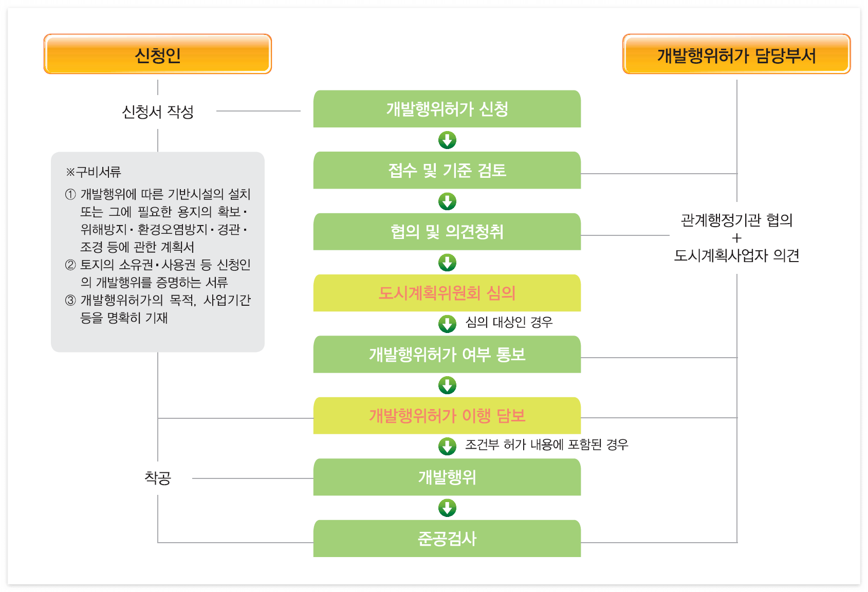 - 허가대상이 되는 사업 중 개발행위가 상대적으로 대규모로 이루어져 해당 개발행위만을 보고 허가여부를 판단하기 곤란한 경우에는 도시계획위원회의 심의를 받도록 하고 있습니다.