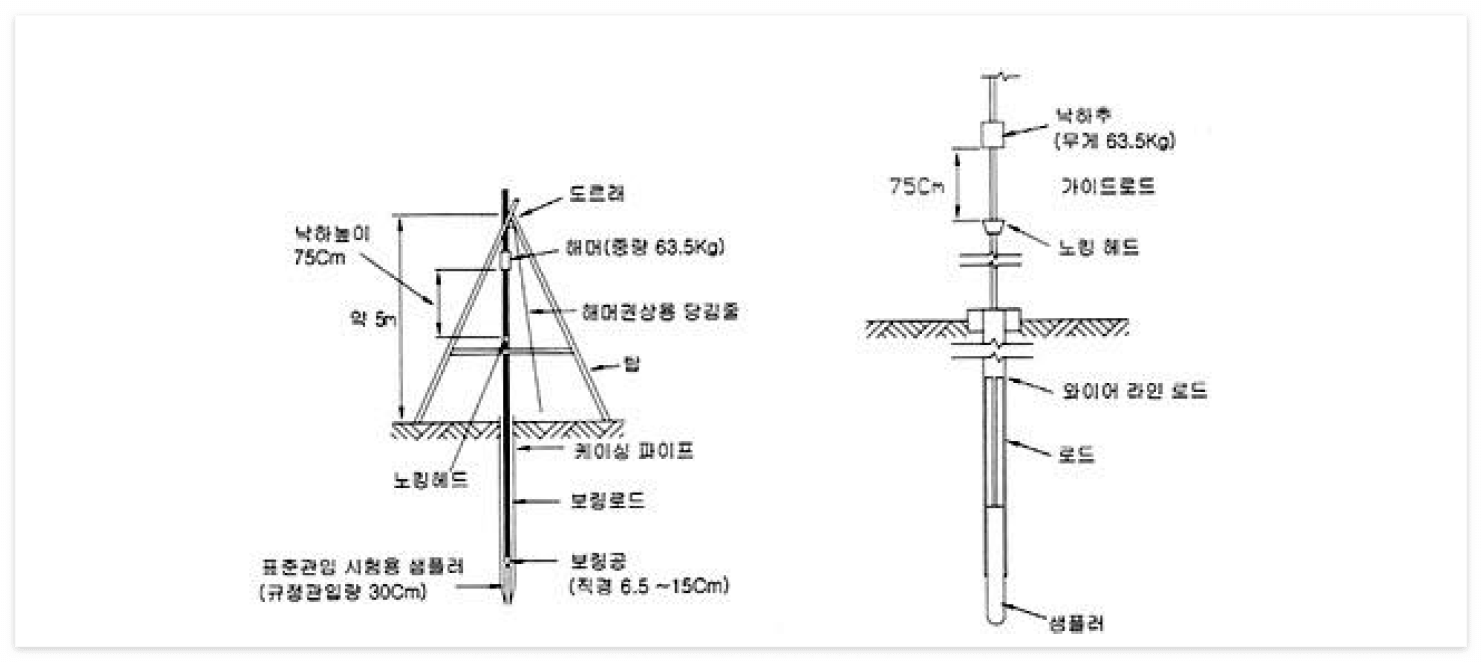 - 정의 : 원위치에서 흑의 연경도, 상대밀도 등을 파악하기 위해 N값을 측정하는 관입시험으로 지반의 지지력을 측정하는 시험임