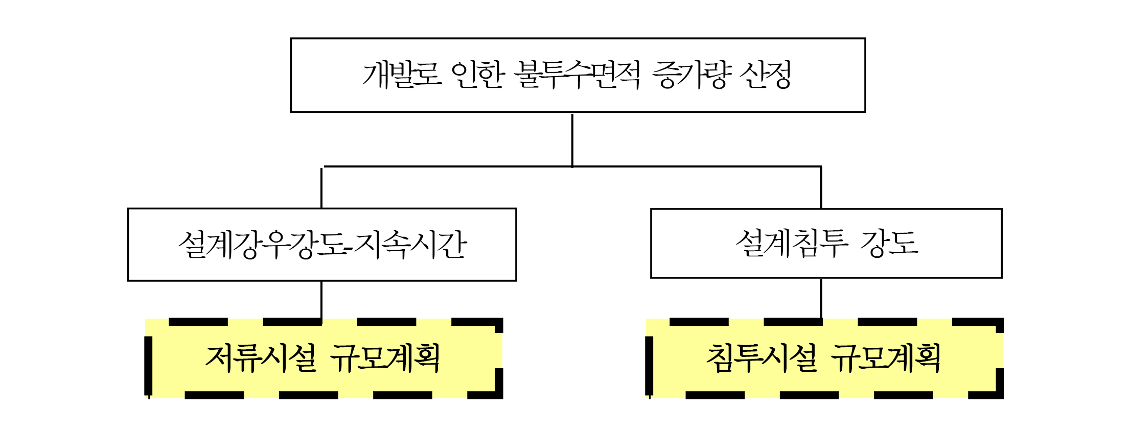 - 현 시점에서 발생하는 초과우수유출량을 저감시키기 위한 시설