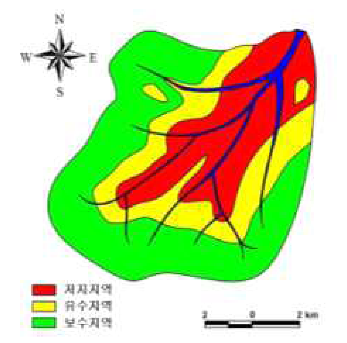 (1) 보수지역 : 우수를 일시적으로 침투 또는 체류시키는 기능을 치수상 확보하거나 증대시킬 필요가 있는 지역