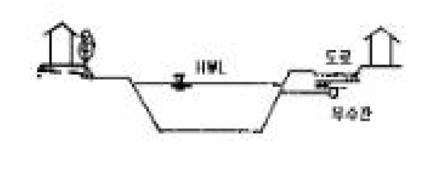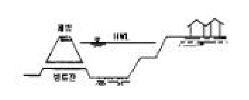 평탄한 지역을 굴착하여 우수를 저류하는 형식으로 계획수위고(HWL)는 주위 지반고 이하이다. |