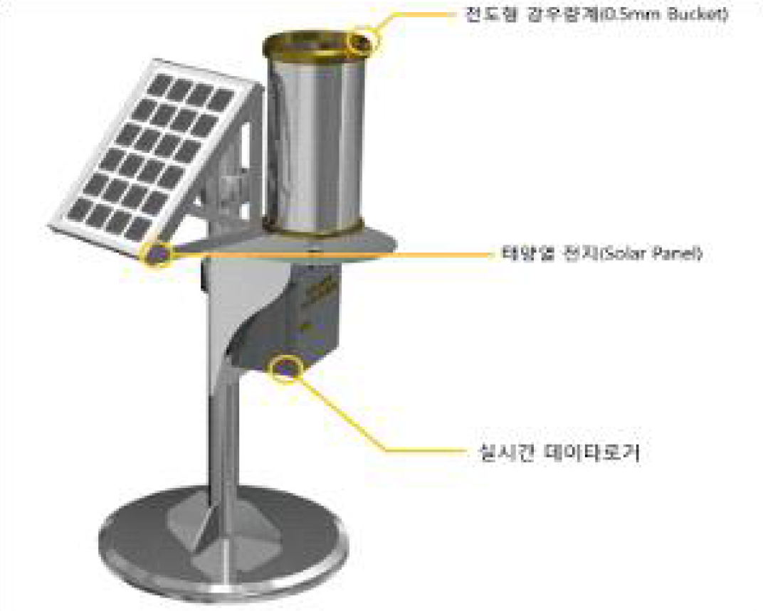 강우량 계측을 위해 전도형 자기 우량계(0.5mm/bucket)를 사용한다.