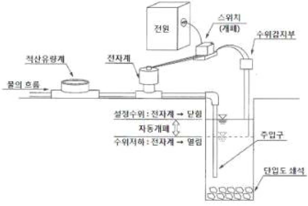 (ii) 수원으로부터의 물 주입량을 수위 센서나 전자 밸브 등으로 조정하고 위의 침투심을 유지한다.