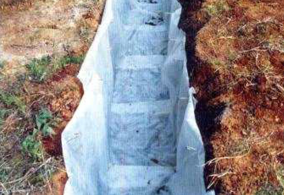 ① 충전쇄석공을 완료 후 매설을 시행하기 전에 충전쇄석의 상부를 투수시트로 가린다.