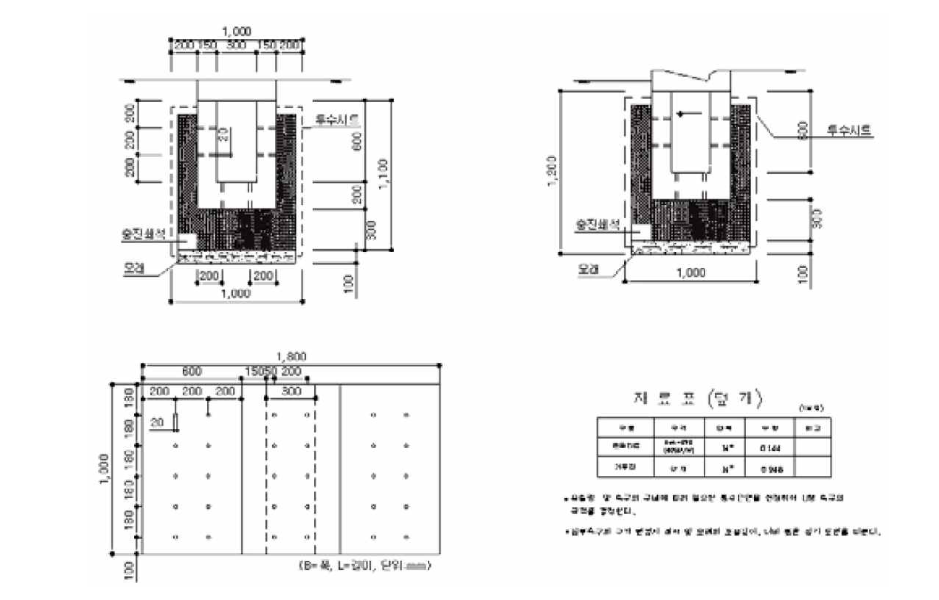 침투통, 침투트렌치, 침투측구 등에 사용되는 모래는 침투통의 내용과 같으므로 생략하기로 한다.